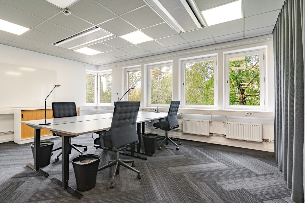 Vi erbjuder Coworking och inredda egna kontorsrum där du kan arbeta ostört och effektivt. Det finns totalt 29 kontorsrum i storlekarna 9-39 kvm, lämpliga för 1-6 personer. Här finns en stor coworking-lounge med café där du bland annat kan avnjuta kaffe från våra baristor. Det finns också en restaurang i huset.