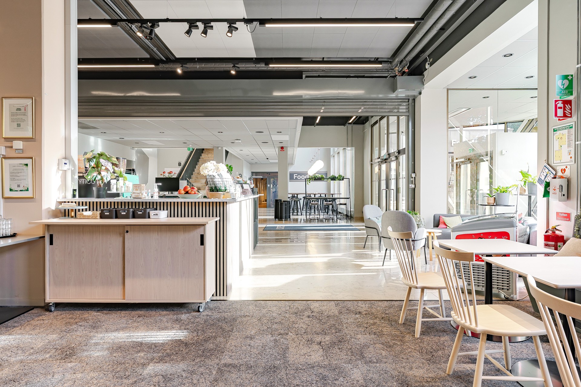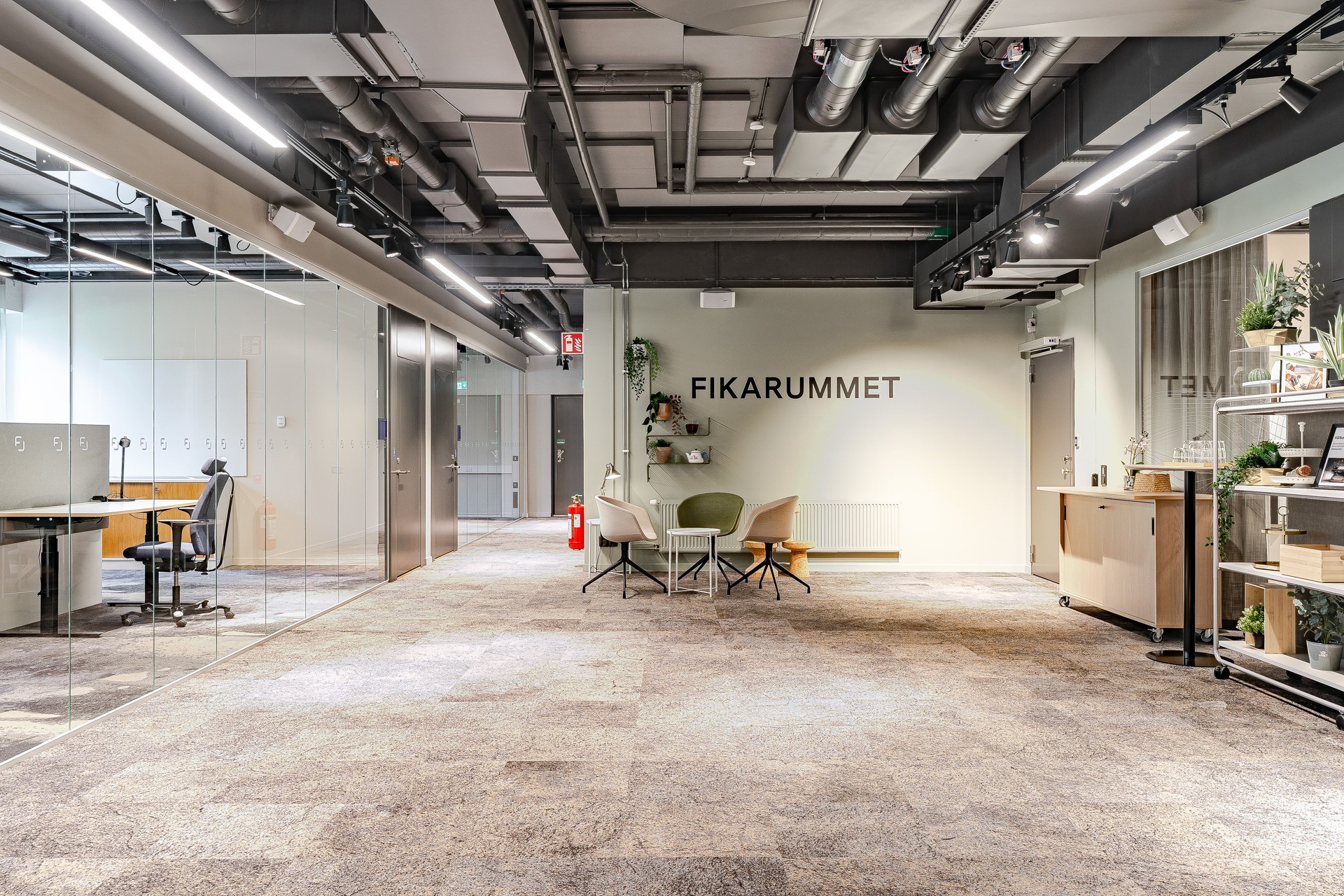 Vi erbjuder Coworking och inredda egna kontorsrum där du kan arbeta ostört och effektivt. Det finns totalt 29 kontorsrum i storlekarna 9-39 kvm, lämpliga för 1-6 personer. Här finns en stor coworking-lounge med café där du bland annat kan avnjuta kaffe från våra baristor. Det finns också en restaurang i huset.