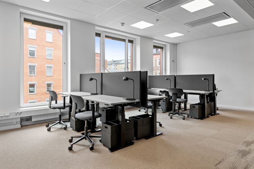 Här erbjuder vi coworkingplatser och modernt inredda egna kontorsrum där du kan arbeta ostört och effektivt. Det finns totalt 38 rum i storlekarna 9-79 kvm, lämpligt för 1-12 personer.