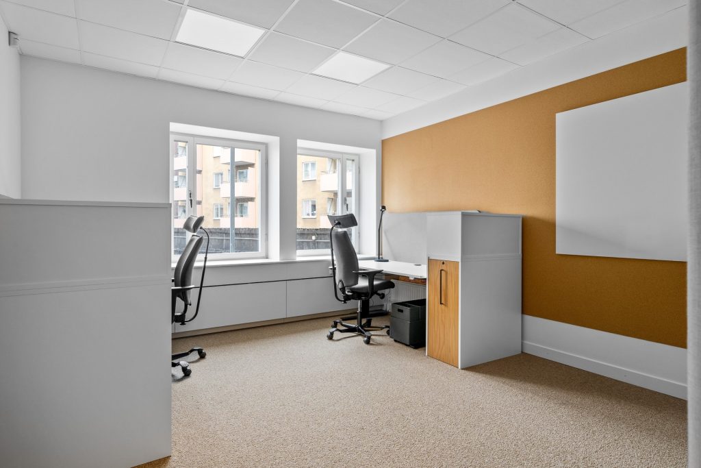 Här erbjuder vi modernt inredda egna kontorsrum där du kan arbeta ostört och effektivt. Det finns 23 rum i storlekarna 11-28 kvm, lämpliga för 1-6 personer.